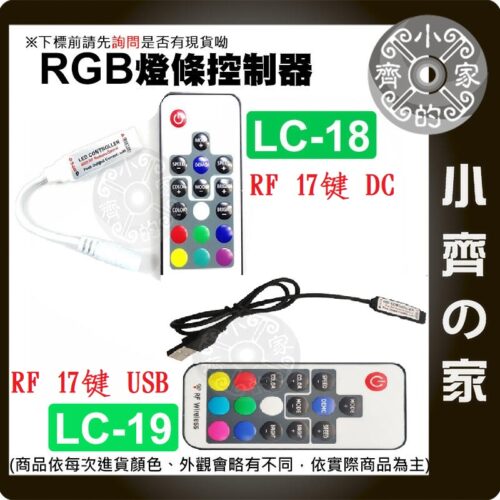 【快速出貨】LC-18 /LC-19 RF 無線射頻 控制器 17鍵 全彩 LED燈條 USB / DC 接頭 燈帶 5-24V 小齊的家