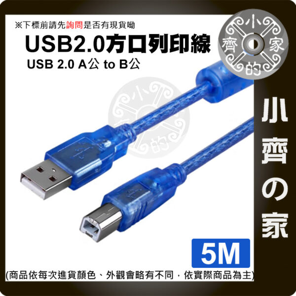 【快速出貨】USB2.0 5米 5m 透明藍 全銅帶磁環遮罩 編織網數據線 印表機線 掃描機線 複印機線 小齊的家