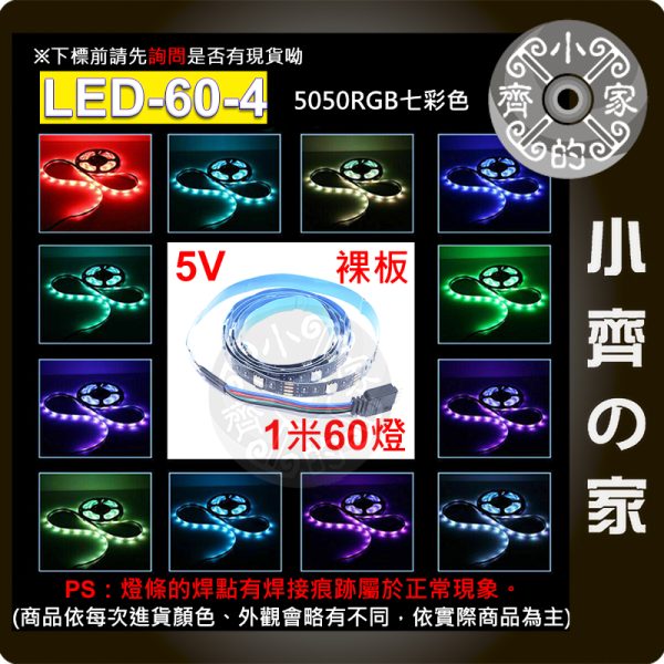 商品介紹 LED-60 裸板 24鍵遙控器 USB 商品特色: ●亮度全面升級,採用5050發光芯片,發光面積擴大3倍,亮度提高 ●燈條防死珠技術,一顆燈珠壞掉,其他燈珠正常發光 ●燈條柔韌性更好,燈珠彎曲時不易脫焊 ●採用35銅厚度電路板,使燈帶更加結實耐用 ●高品質led芯片,高亮度,使用壽命長 ●優質精密電阻,穩定電壓,提高燈帶壽命 ●有背膠,黏性強,耐溫性,美觀大方,便於安裝易於應用 ●搭配控制器使用,可以輕鬆地調整顏色/亮度/模式,變換千百種不同色溫,簡單方便 ●不防水設計,燈帶上的LED燈珠裸露在外面,適用於室內等乾燥地方 完整圖片說明:請使用電腦版(複製網址)前往查看 http://www.chi-lung.com/pic/promotion/USB RGB Light.jpg 商品規格: ●商品規格:5050燈珠 ●燈珠數量:30/米、60/米 (LED-60-4) ●商品寬度:10mm ●商品厚度:約1.5mm ●使用電壓:5V ●使用功率:約3.5W/米 ●光束角:120度 ●裁切長度:燈帶上有裁切點供參考 ●一捲長度:1米(LED-60-1) / 2米(LED-60-2) / 3米(LED-60-3) / 1米(LED-60-4) ●防水等級:IP20 ●商品內容物:燈帶*1 USB紅外線控制器*1 24鍵遙控器*1 注意事項: 商品保固 7天(非試用期)